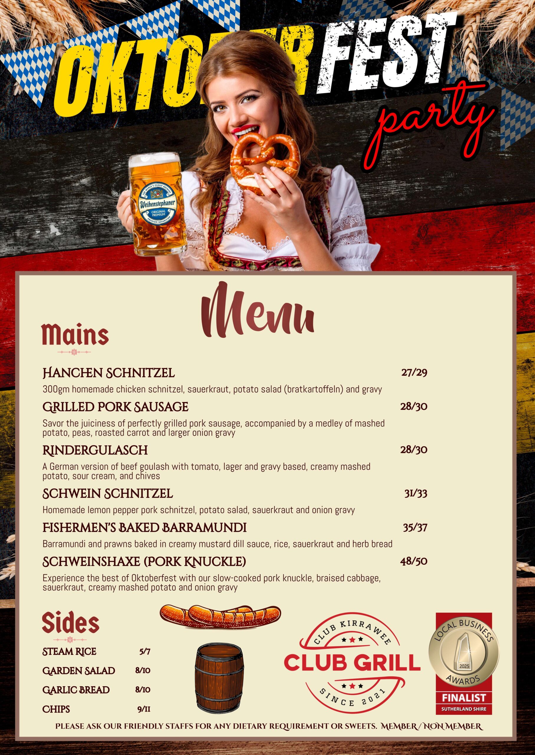 Centred around Good Food, Beer and Traditional Music, Oktoberfest is a cultural experience that is not to be missed @ Club Kirrawee.